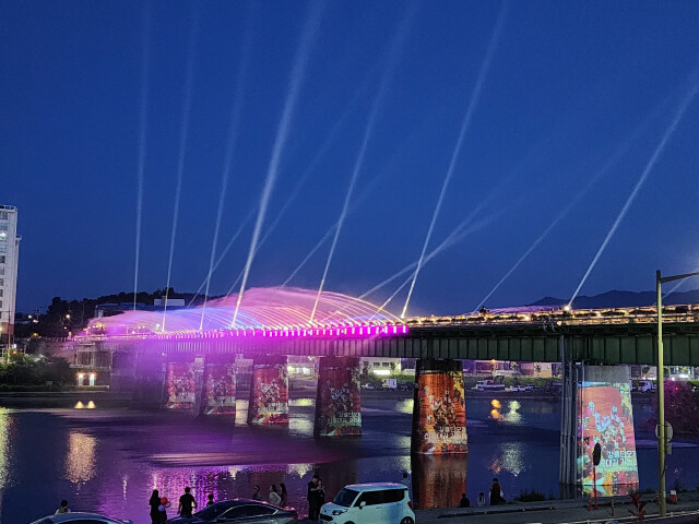 주간에는 분수쇼만, 야간에는 분수 및 음악과 조명을 모두 가동합니다.